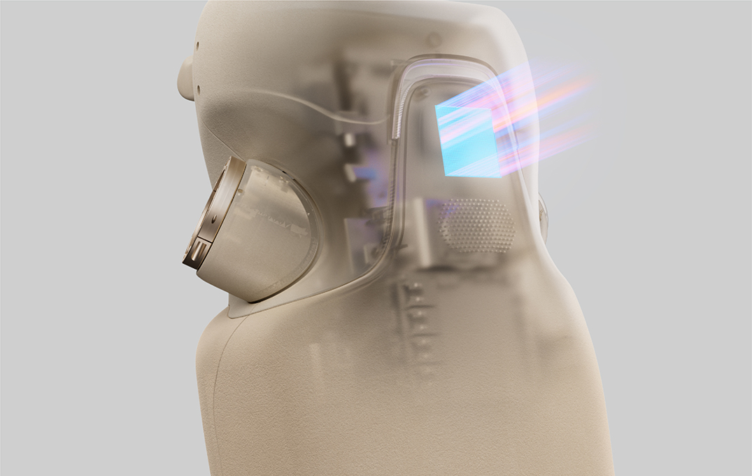 GR-3 头部配备 4 个麦克风阵列,依托全向收声消除交互盲区,可精准捕捉用户发声位置并自动转向,配合回音消除与定向增强,实现更智能的听觉交互。